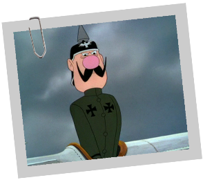 Fritz est un aviateur allemand, l’un des premiers pilotes militaires, durant la Première guerre mondiale. Logiquement, il est l'antagoniste du pilote français, Pierre. Il porte fièrement l’uniforme allemand et le célèbre casque à pointe et arbore une épaisse moustache noire qui rebique à ses extrémités. Les avions de guerre n’en étant qu’à leurs débuts en 1914 et leur rôle étant bien plus d’informer que d’attaquer, les deux pilotes ont beau être théoriquement ennemis, ils se saluent poliment lorsqu’ils se croisent et Pierre prend même son collègue en photographie… Mais lorsqu’il développe le cliché chez lui, c’est l’affront, Fritz s’est moqué de lui et lui a fait un pied de nez ! Cela est inadmissible, il en va de l’honneur français ! |