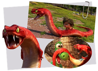 Le Collectionneur est un styracosaure, un herbivore du Crétacé possédant de nombreuses cornes. Névrosé, il ne se déplace jamais sans ses « amis », de petits animaux qui se déplacent avec lui, jonchés sur ses cornes et sont censés le protéger des différentes menaces auxquelles il pourrait être exposé. Croisant la route d’Arlo et Spot, il essaye de recruter le jeune humain dans sa bande de « petits garde-du-corps ». Le Collectionneur apparaît à Arlo et Spot alors que ceux-ci, très éloignés de la ferme natale du petit apatosaure, ont entrepris le chemin censé les y reconduire. Parfaitement fondu dans le décor, le Collectionneur s’adresse à Arlo qui peine à le voir tant son corps se confond avec les arbres et les végétaux situés derrière lui. Il reste néanmoins repérable car ses nombreux « amis » n’ont pas sa parfaite science du camouflage. |
