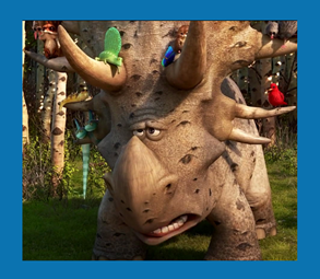 De façon officielle, le Collectionneur est présenté comme appartenant à l’espèce des styracosaure, des dinosaures herbivores du Crétacé. Pour autant, il n’en est pas un parfait représentant car il possède plus que neuf cornes sur sa tête ! Certaines de ses cornes sont caractéristiques des tricératops, cousins des styracosaures, ayant vécu à la fin du Maastrichtien, au Crétacé supérieur, il y a 68 à 65 millions d'années. Le Collectionneur est donc un savant mélange de plusieurs dinosaures de la famille des cératopsidés qui se caractérisent par leur bec, leurs rangées de dents pour mâcher l'herbe au fond de la bouche, de même que par des cornes et des collerettes élaborées. |